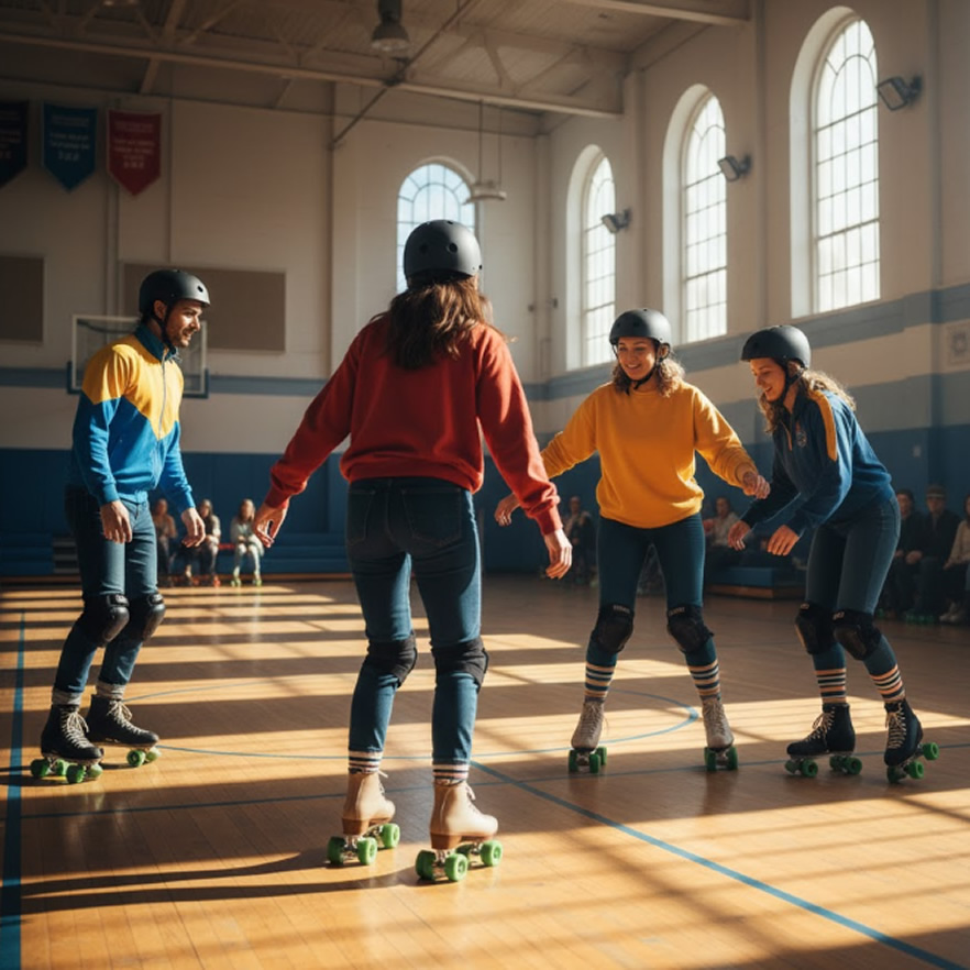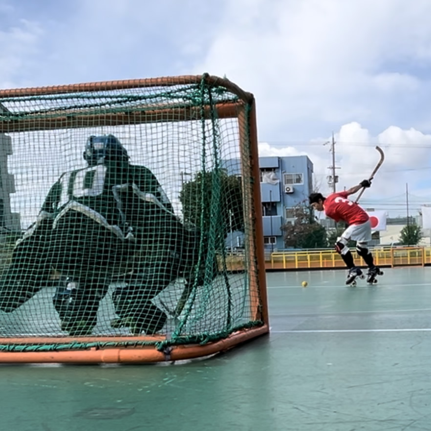 ローラースケートを装着して行うホッケー競技です。アイスホッケーとは異なり、体当たりなどのボディチェックが禁止されているのが特徴です。防具は(ゴールキーパーを除き)グローブや膝・脛のガードといった軽装でプレーします。1チームはフィールダー4人とGK1人の計5名で構成されます。